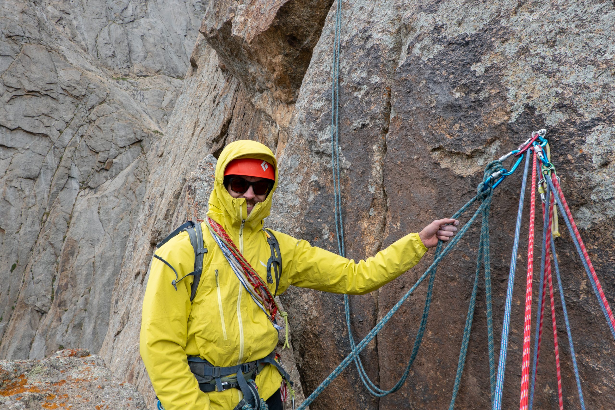 • After another night in the west face of Pik Odessa, Motz and Patrick rappelled over the route. There were some bolts at the belays which made the descent happen without bigger complications.