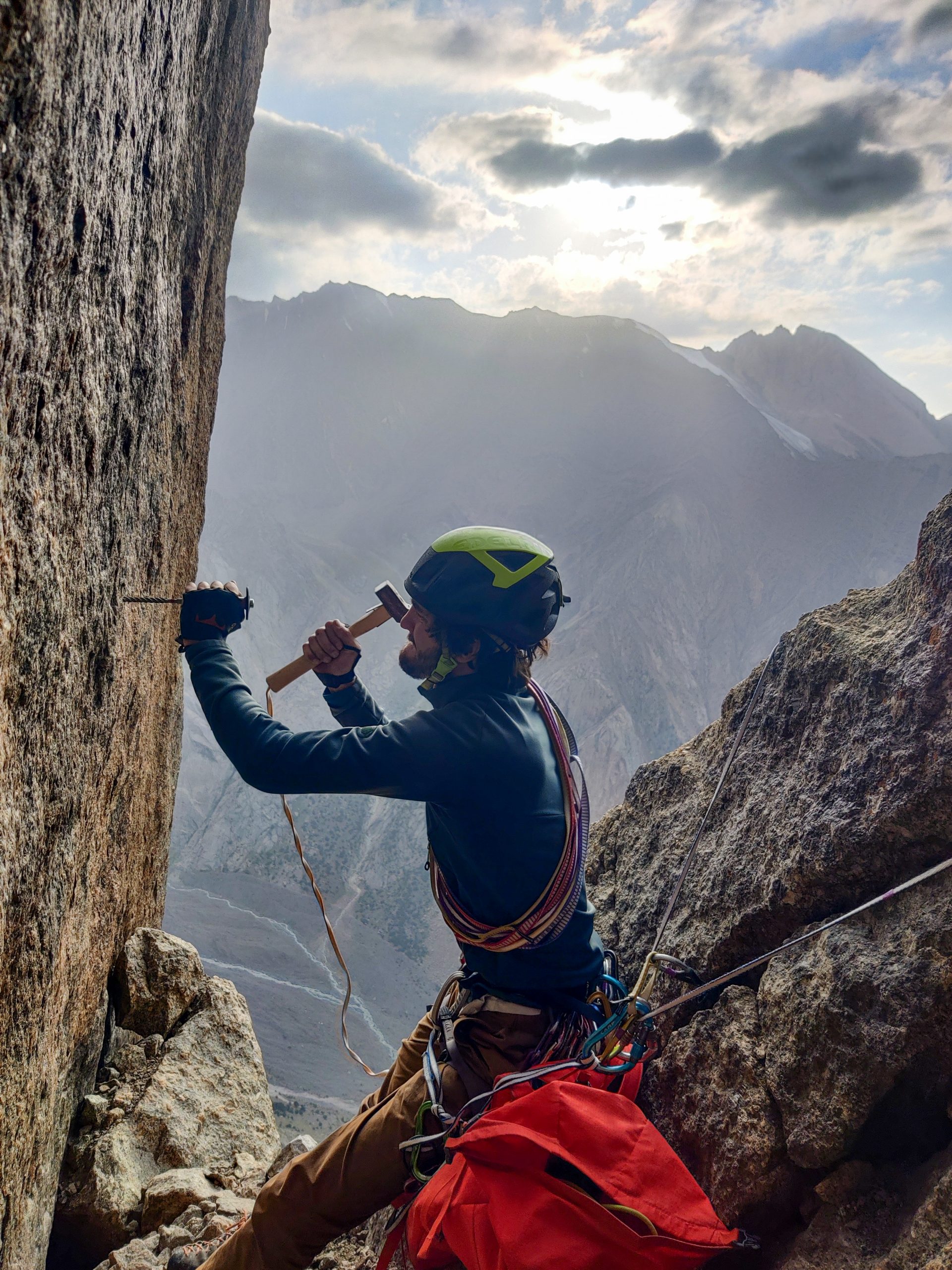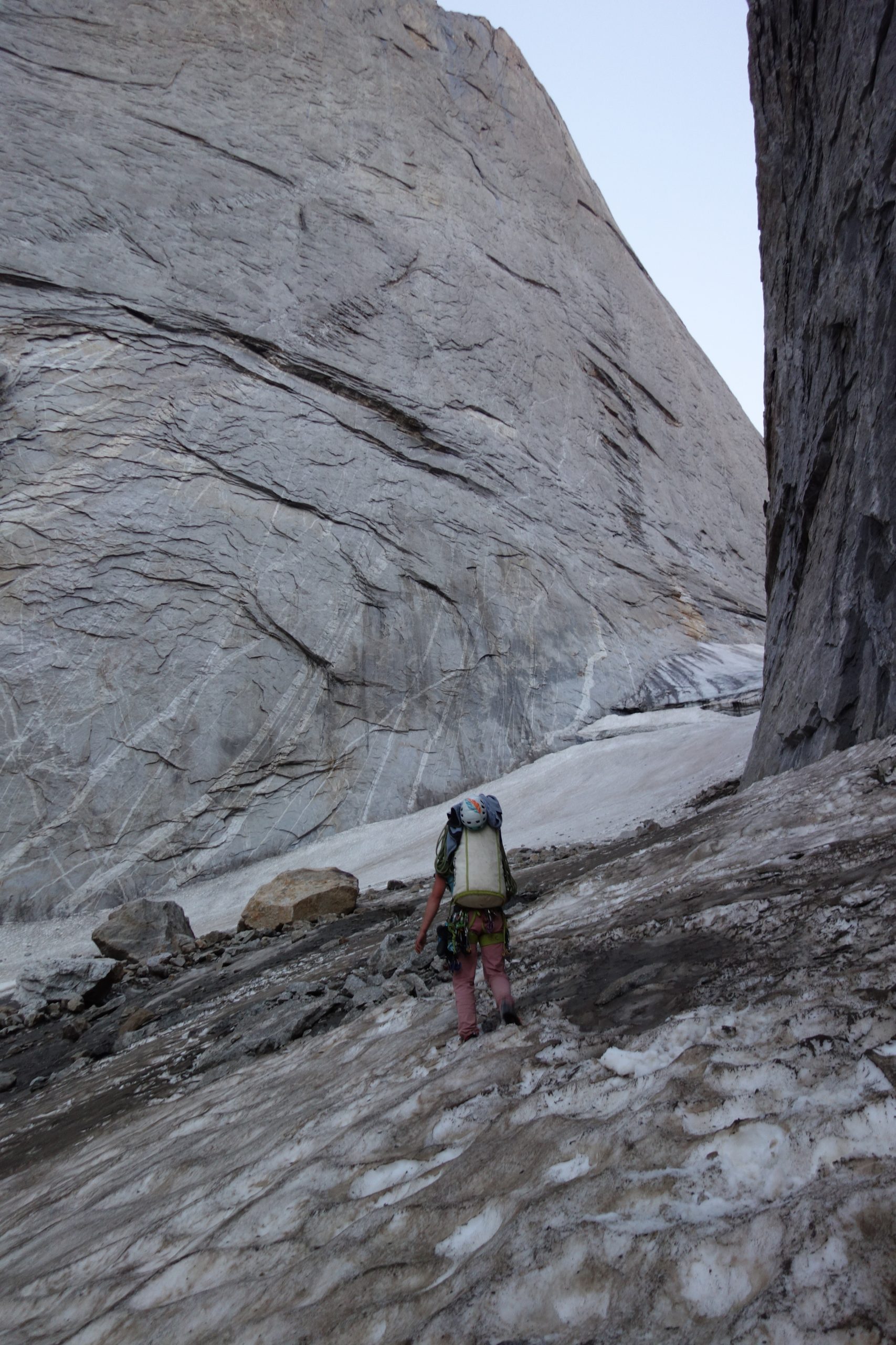 • Patrick felt slightly better and hiked to the base of “Pik 1000 years of Christianity” to look for some new lines and to carry up some material. He and Motz set their sights on the wall on the very right of “Christianity”. But Patrick could not spot a promising line and decided that it was not worth it.