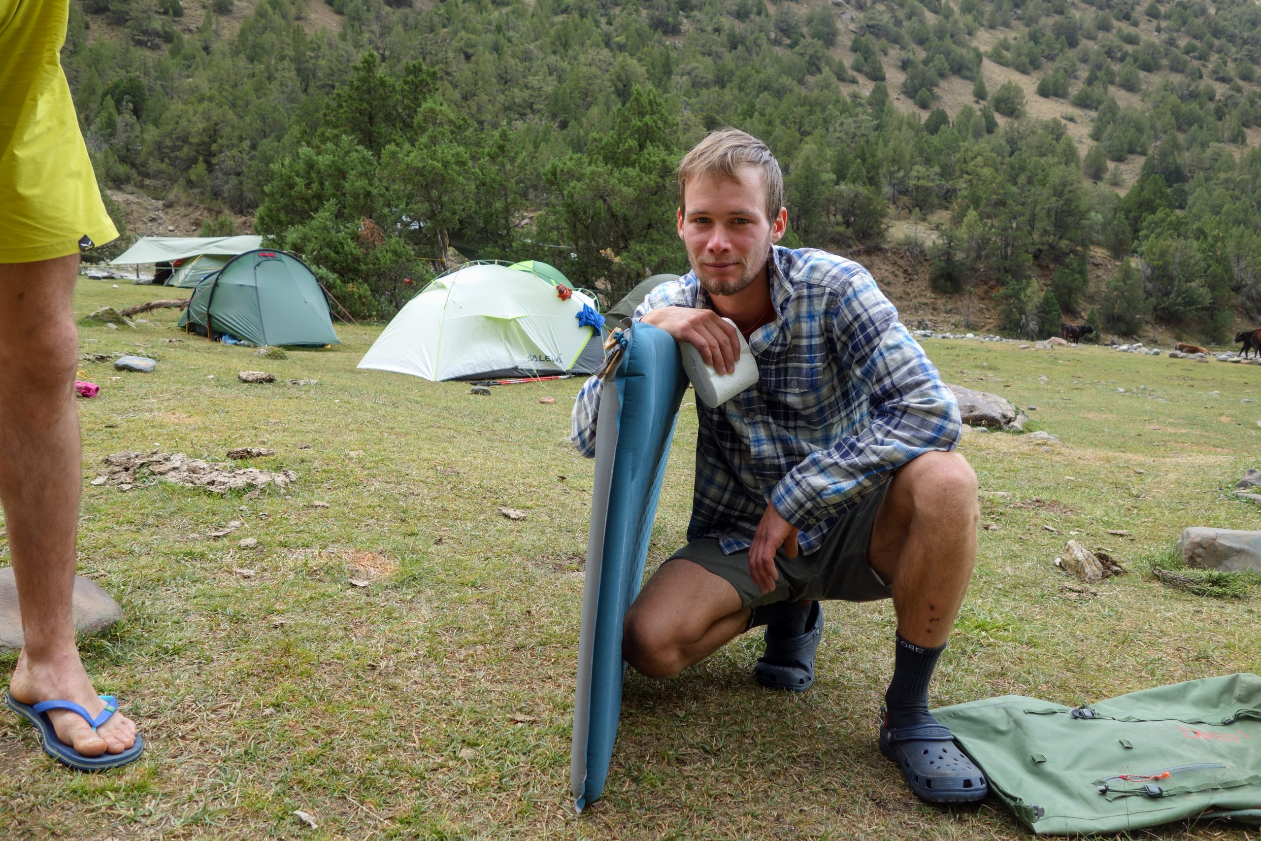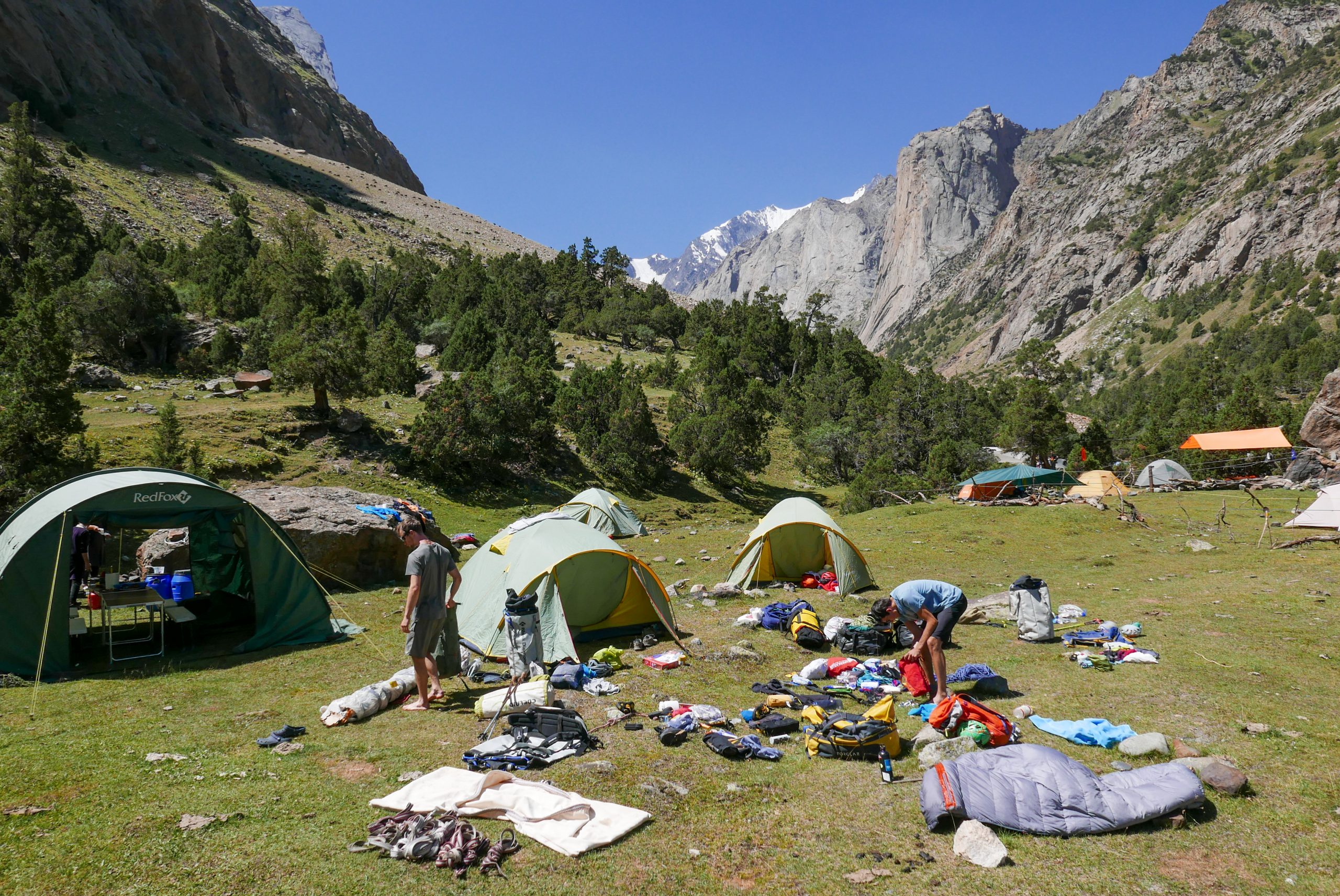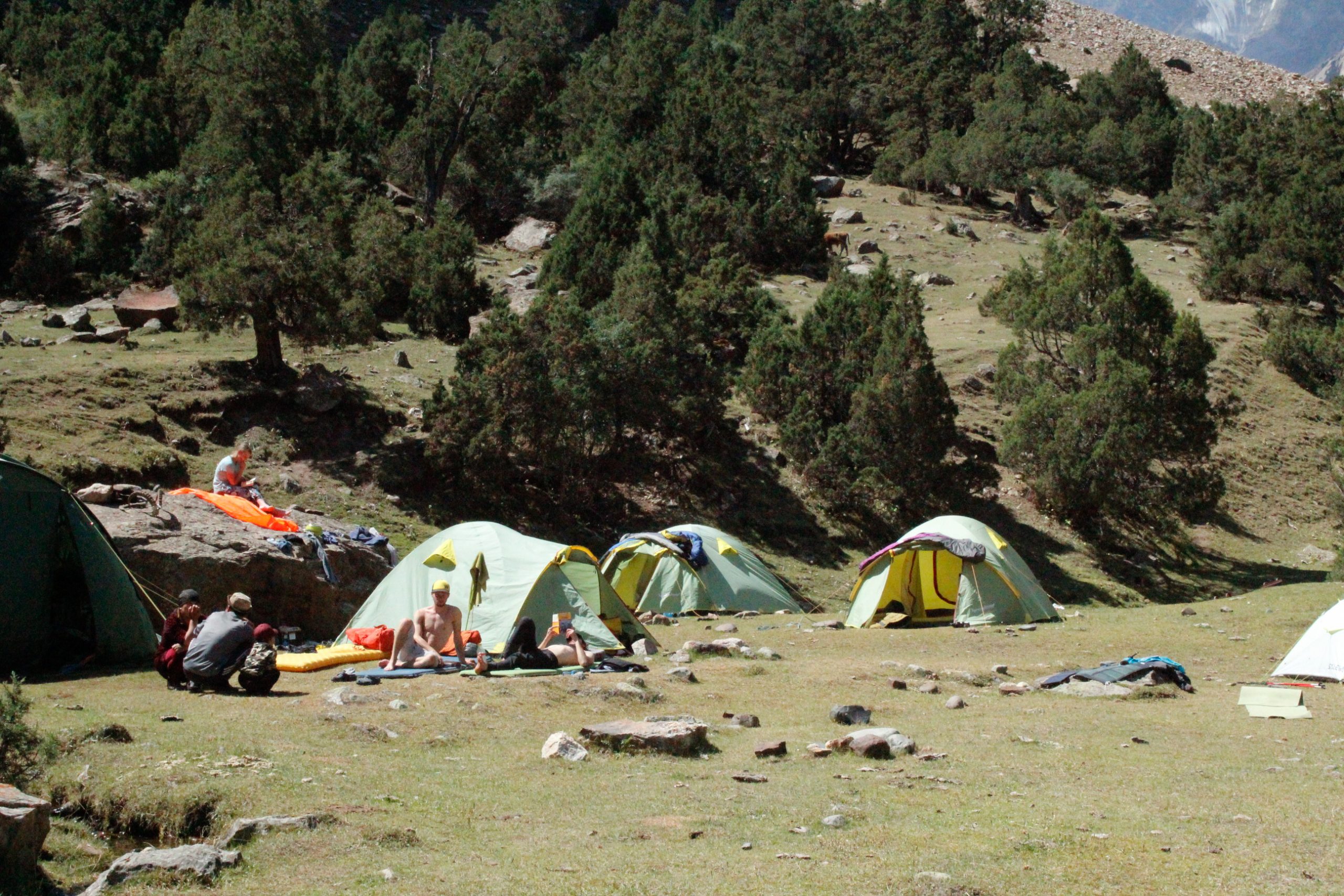 • The Russians set up their tent. We slept under the free sky because our tents were already in the valley.