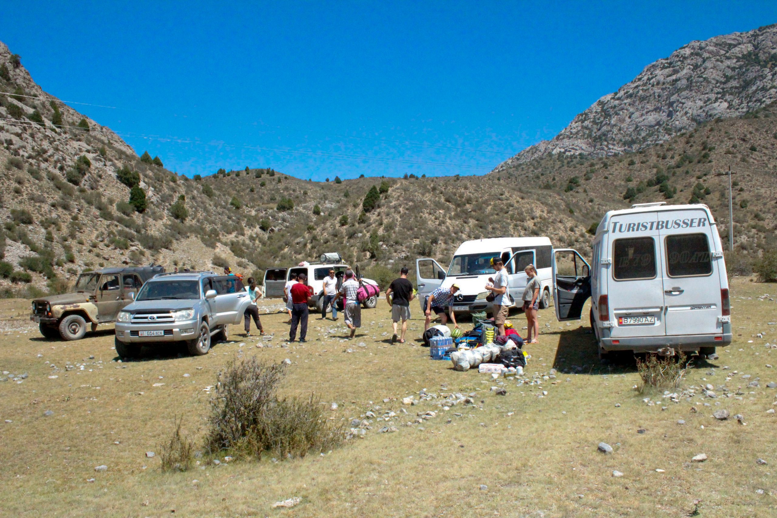 • After 2 more hours of driving, we stopped at a meadow where three jeeps were waiting for us. A Russian team was already there.