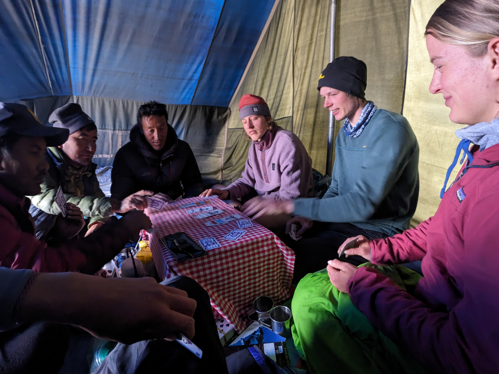 Die einwöchige Anreise hat mich, dank sehr berührender Einblicke in die buddhistische Kultur und in die einfachen Lebensweisen der Einheimischen, so tief beeindruckt, dass ich keine alpinistischen Leistungen mehr von mir erwarte, um die insgesamt fünfwöchige Expedition als Erfolg bezeichnen zu können. Ich genieße die Zeit zwischen den Kletteraktionen im Basislager, die wir völlig abgeschirmt von der Außenwelt mit Gesellschaftsspielen, Lesen, Schreiben, Malen oder einfach nur Nachdenken verbringen.